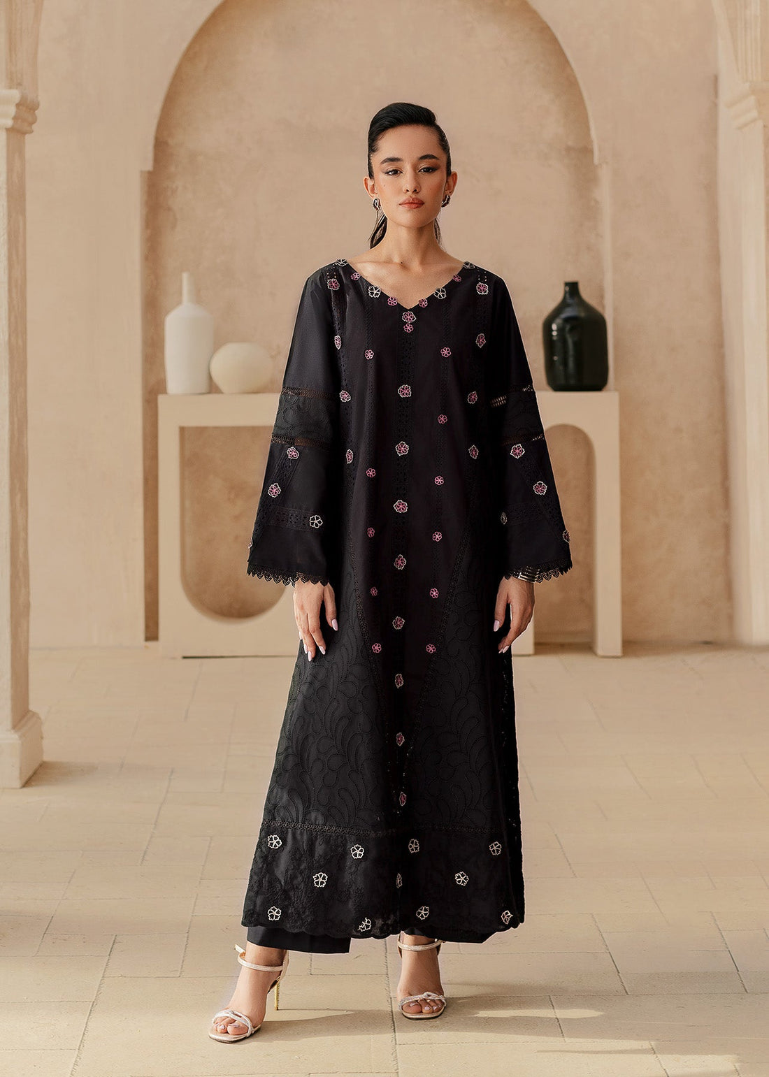 Nazak, a stunning statement piece for the bold and beautiful. This black lawn creation is...