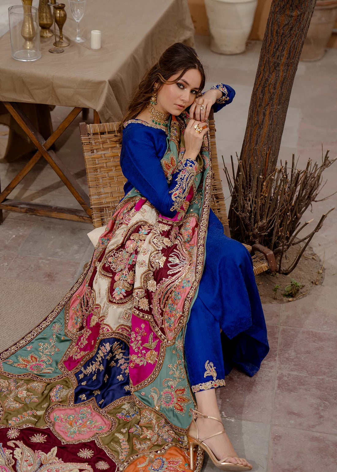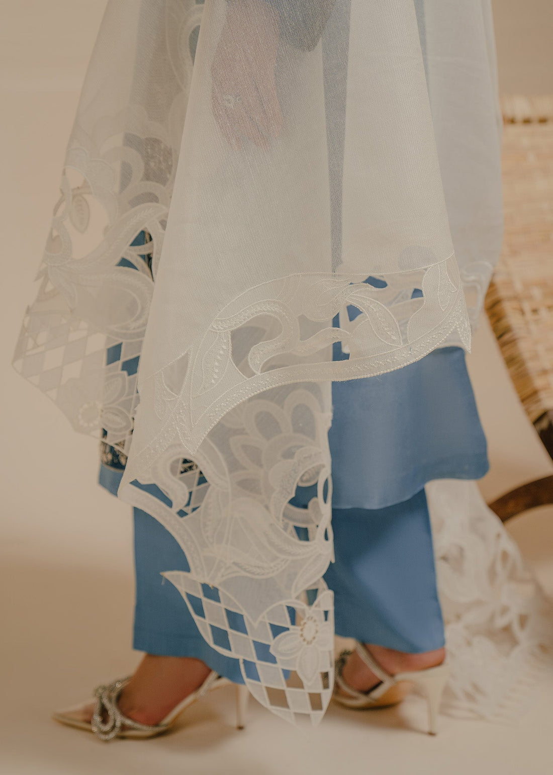 Ayla is a captivating canvas of sublime blue, is adorned with intricate floral embroidery over...