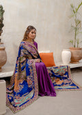 Color: Purple Dress and Multicolored Patchwork Shawl